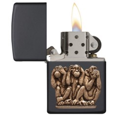 59,00 €Γνήσιος αντιανεμικός αναπτήρας της εταιρείας Ζippo, σε κλασσικό μαύρο matte χρώμα διακοσμημένος από τρεις μαϊμούδες.