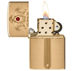 85,00 €Στεφανωμένο με ένα ρουμπινί-κόκκινο κρύσταλλο, ένα περίτεχνο σπαθί κυριαρχεί στην επιφάνεια αυτού του αναπτήρα Armor High Polish Brass σε ένα πολυτελές σχέδιο Deep Carve.