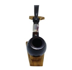 Πίπα καπνού σε καφέ χρώμα, μαύρο επιστόμιο και ασημένιο δαχτυλίδι φτιαγμένη με ξύλο ρείκι.